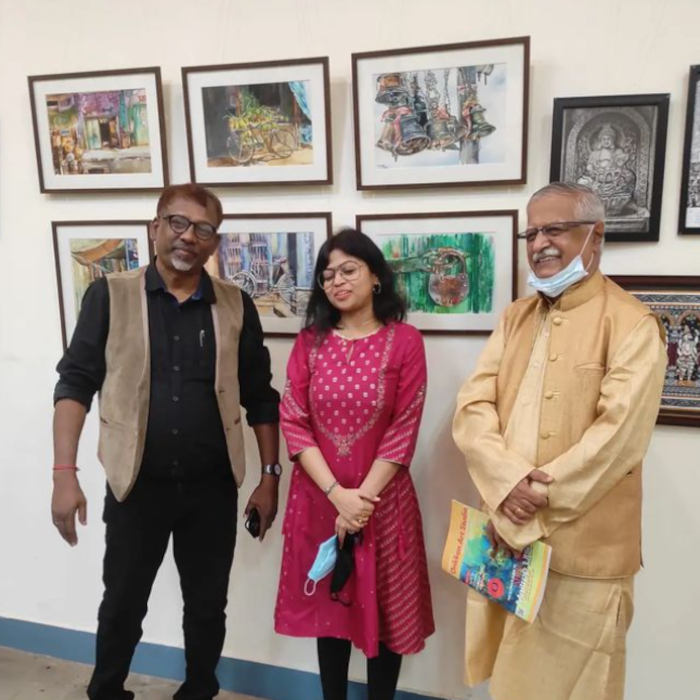 He was born in Kolkata, and has now made Bengaluru his karmabhoomi. With his wealth of experience, Mr. Ghosh offers comprehensive art classes tailored to individuals of all ages, both online and offline at his renowned art institute, Sri Krishna Modern Art School (SKMRT). Furthermore, Ghosh contributes to the artistic community by organizing workshops focused on papier-mâché, clay modeling, and the creation of clay Ganesha sculptures.