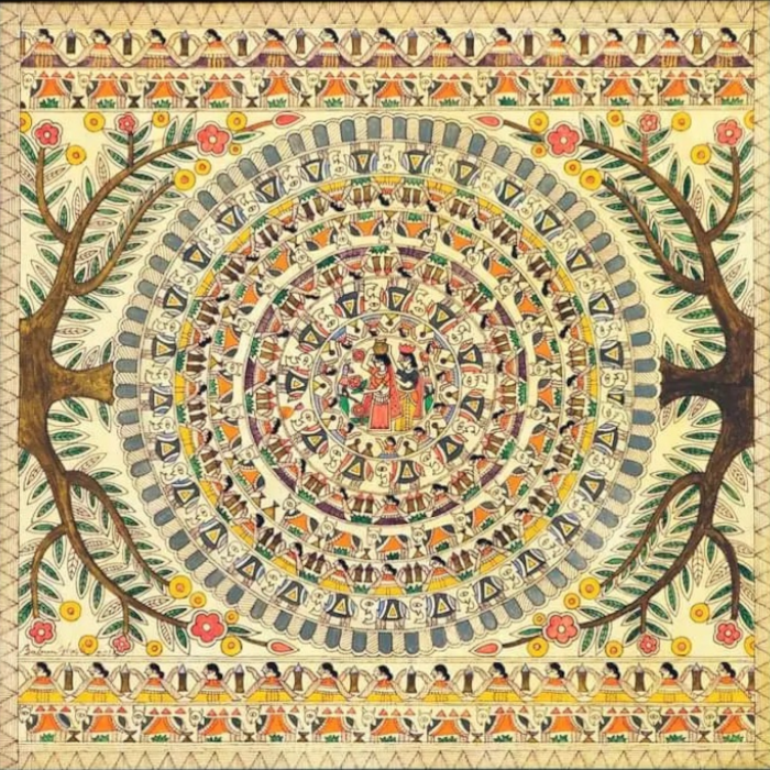 Dream series – Own with Lady, Dream of an Owl with Lady, portrayed on paper, Fusion of traditional potochitra art with modern art.